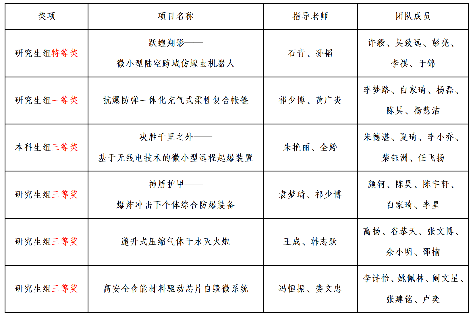 除此之外,英国上市365其他获奖团队从防爆、引爆、防护、灭火、控制系统等多方面为国家特种装备贡献新点子、新方法、新成果,未来机电学子将继续砥砺前行,筑牢“延安根、军工魂”,为国家建设贡献青春力量!