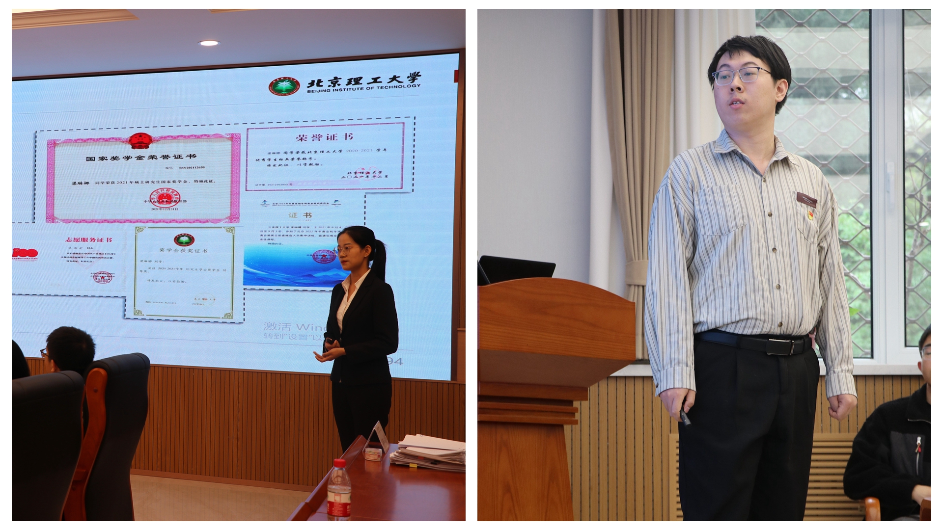 硕士生答辩人介绍了自己硕士期间取得的科研成果,他们积极投身科研实践、脚踏实地,在拼搏中增添青春底色。
