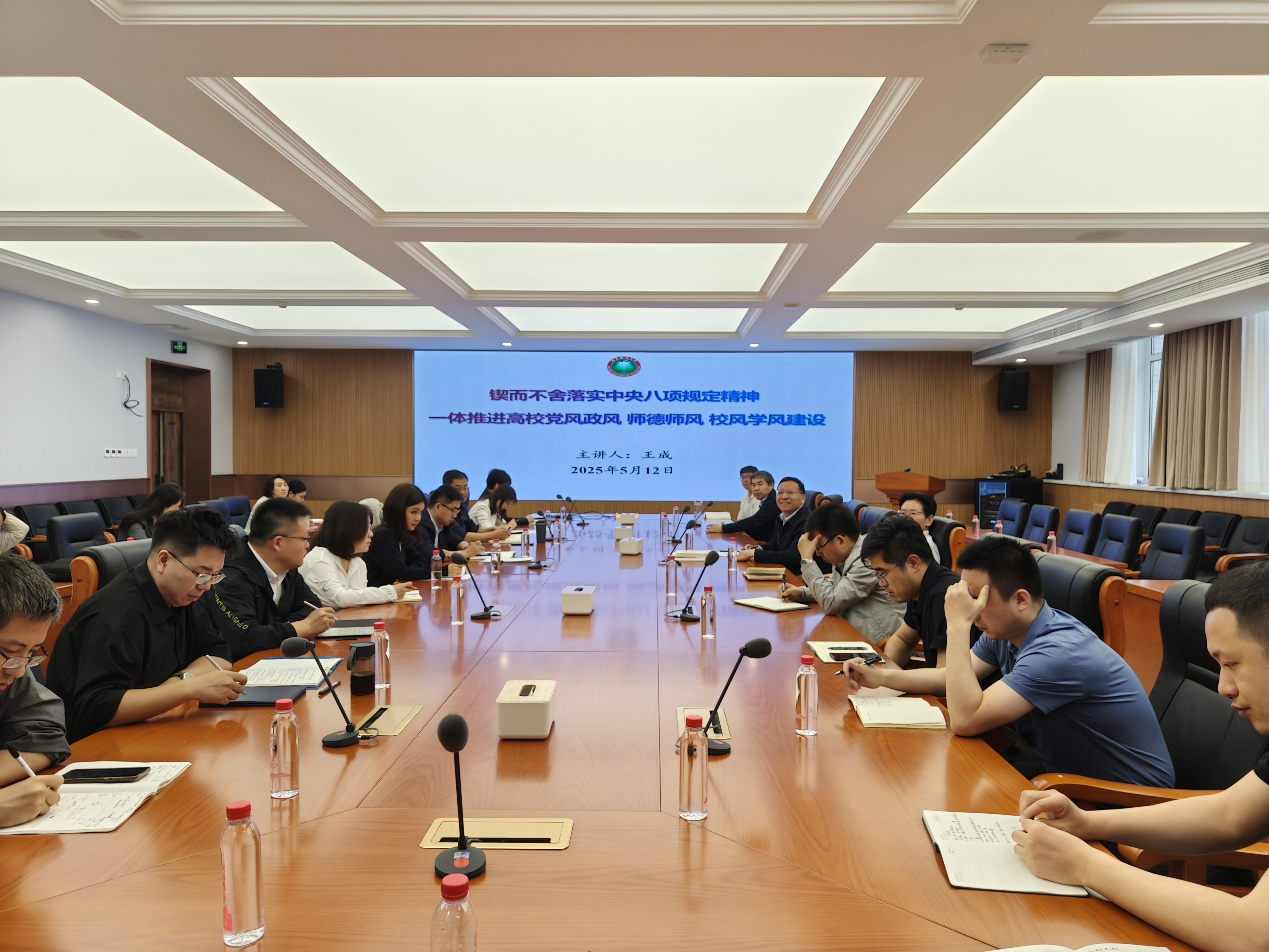王成领学了有关师德师风建设的文件精神,并以“锲而不舍落实中央八项规定精神,一体推进高校党风政风 师德师风 校风学风建设”为题作重点发言,他表示要充分认识师德师风建设的重要性,筑牢师德底线,对师德问题坚持“零”容忍,完善师德师风建设长效机制。